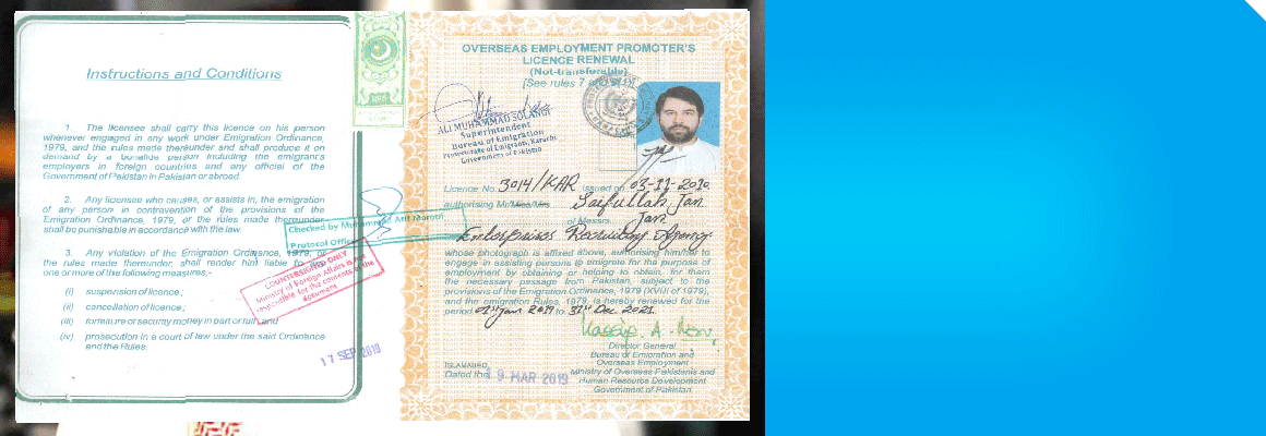 The JAN ENTERPRISE one of the leading Manpower agency of Pakistan and well established, is registered under the act of Ministry of Labor with the ambition of solving the unemployment problem as well as supporting the economy of the Nation.We supplies all categories - skilled, semiskilled, unskilled, technical and professional manpower based on the demand of our clients Due to our quality and genuine services we are still retaining ourselves among the 754 agencies in Pakistan and has been supplying manpower through Abroad.